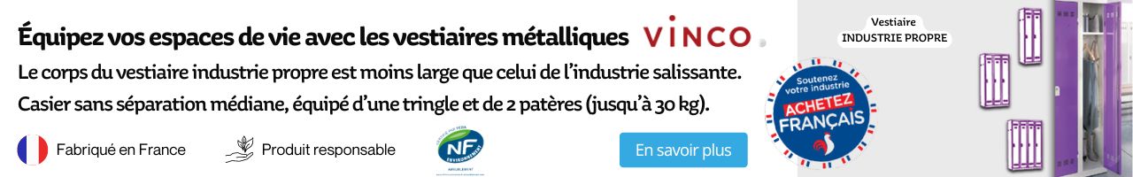 Pour des locaux bien équipés, Manutan Collectivités vous propose une gamme de vestiaires pour industrie propre. Idéals pour les collectivités industrielles, ces vestiaires trouvent également leur place dans les établissements scolaires ou les gymnases et clubs sportifs ou tout autre environnement de travail non salissant. Il permet aux usagers des locaux de mettre leurs affaires personnelles bien à l'abri ou leur tenue de travail en fin de journée. En aménageant votre espace professionnel avec des vestiaires, vous l'optimisez en praticité et efficacité et les utilisateurs du lieu gagnent en confort.