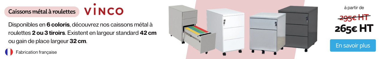 La gamme de caissons de bureau comporte un choix complet de solutions de rangement. Sur le site de Manutan Collectivités, vous trouverez des tiroirs sur roulettes , des armoires métalliques, ainsi que des boîtes de rangement. Qu’ils présentent une structure haute ou basse, certains modèles de caissons de bureau disposent d’un plateau supérieur. Ce qui permet de s’en servir en tant que support d’imprimante. Afin de s’accorder avec votre cadre professionnel et votre mobilier, comme une armoire métallique ou un meuble de bureau , les caissons de rangement se déclinent en différents styles esthétiques. Cela vaut aussi pour le choix des matériaux. À titre d’exemple, on peut évoquer du bois mélaminé, de l’aluminium ou des matières plastiques ABS. Des roulettes en aspect chêne sont également disponibles. Pour information, vous pouvez opter pour un rangement de bureau à ouverture latérale (droite ou gauche).