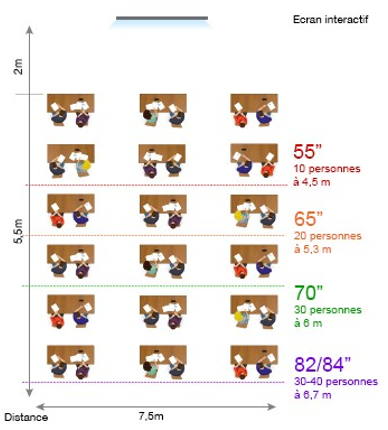 - Un ENI de 75 pouces conviendra à un groupe de 20 à 30 personnes (ce qui correspond à une salle de classe classique, en primaire notamment)