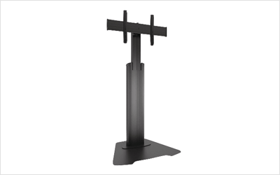 .Avec ce type de support, le poids de l’écran est réparti entre le sol et le mur. On règle la hauteur de l’ENI lors de l’installation. Certains de ces supports présentent une fonction électrique de réglage en hauteur, pour s’adapter à la taille des différents utilisateurs.