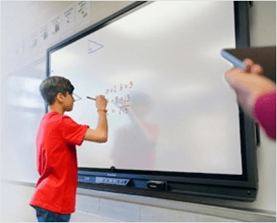 L’Écran numérique interactif propose plusieurs fonctions qui en font l’outil idéal pour les visioconférences. L’ENI est également parfait pour la classe à distance. En effet, un écran numérique interactif en classe garantit aux élèves travaillant depuis chez eux une excellente visibilité du tableau et de ce que l’enseignant y écrit. Cela résout le problème posé par un tableau blanc ou noir classiques qui, quand ils sont filmés via une webcam, sont difficilement lisibles par les enfants, notamment à cause des reflets.