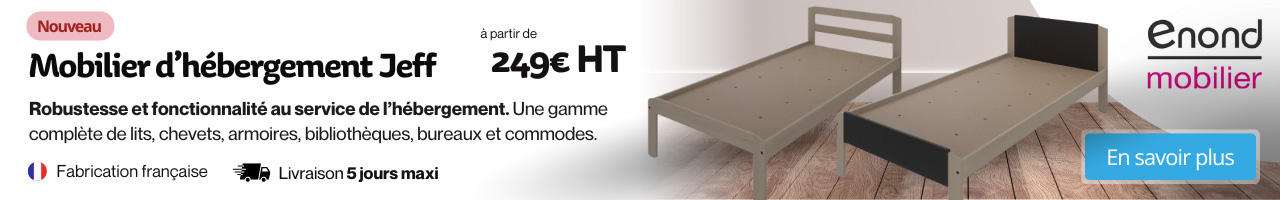 Si vous cherchez du mobilier d’hébergement pour un internat, ou pour un espace dédié aux jeunes, Manutan Collectivités a également sélectionné de nombreuses options pour répondre aux goûts et aux besoins des plus jeunes. Nous proposons des lits avec des tiroirs de rangement intégrés, qui offrent une solution pratique et élégante pour ranger les jouets et les vêtements des enfants. Nous avons également des lits multirangements qui sont équipés de différents compartiments de rangement pour optimiser une fois encore vos espaces d’hébergement tout en garantissant la meilleure ergonomie et le meilleur confort possible.