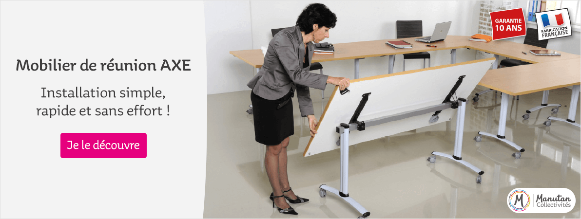 Si vous souhaitez optimiser vos bureaux et salles de réunion, nous vous proposons la gamme Axe et ses tables de réunion esthétiques et fonctionnelles, offrant de nombreuses possibilités d'aménagement pour un grand confort de travail. Avec leurs tableaux pivotants, les tables de réunion de la gamme Axe peuvent être stockées facilement. Elles sont mobiles et peuvent être associées pour former de grands ensembles.