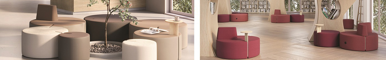 -    Pouf Tri Ply Ø 115 cm + dossiers + tablette tissu polyesterPrix À partir de À partir de 1 682,00 € 2 026,49 € TTC