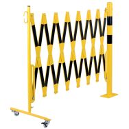 - Barrière extensible en acier sur roulettes et poteau rond.