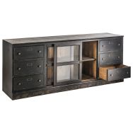 Buffet Amsterdam pin massif finition noire vieillie - Meuble télévision