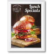 - Facilité d'utilisation: le support d'affichage s'insert et se retire aisément en ouvrant et refermant les 4 bordures profilées du cadre en aluminium.