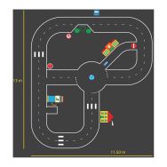 Comprenant 50 mL de chaussée + 3 passages piétons + 1 rond point, la maison, l'école, la pompe et les panneaux.