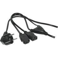 - Cordon ''Y'' fiche CEE 7/7 mâle vers 2 prises IEC C13 femelles.