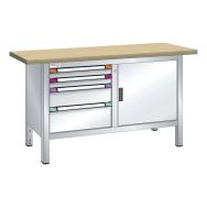 Établi compact multiplex 150x70x84 cm 1 porte battante 4 tiroirs Thurmetall