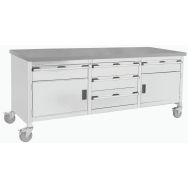 Etabli roulant monobloc Cubio - plateau linoléum 2 portes et tiroirs - Bott