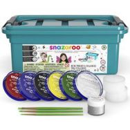 Contient : 6 fonds de teint (noir, blanc, vert, jaune, rouge, bleu), 1 gel paillettes 12 ml, 2 éponges, 3 pinceaux et 1 guide maquillage avec instructions pas à pas.
