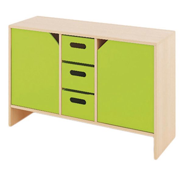 Meuble Basik 2 à 6 tiroirs bois et portes - Meuble de rangement maternelle