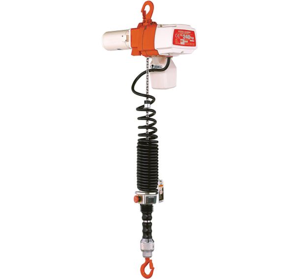 - Palanc électrique monophasé avec capacité de charge jusqu'à 240 kg, 230 V / 50 Hz monophasé.