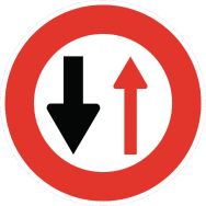 - Panneau routier d'interdiction de stationnement B15 ''céder le passage aux véhicules venant en sens inverse''.