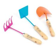 - 1 râteau, 1 bêche et 1 pelle, idéal pour l'initiation au jardinage et pour apprendre aux enfants quels sont les noms des outils et à quoi ils servent.