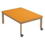 Table Lili roulettes piétement hêtre plateau rectangulaire couleur