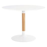 - Table ronde fixe avec plateau en MDF laqué blanc épaisseur 20 mm.