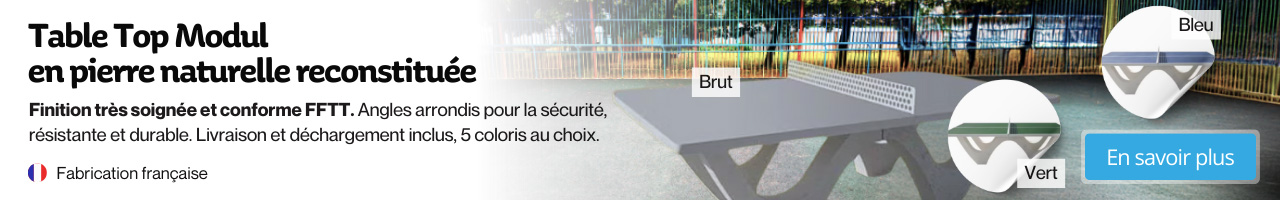 La table de tennis de table est la star de nombreux clubs partout en France. Pour s’adapter à toutes les surfaces, mais aussi tous les espaces de rangement, elle se décline en deux modèles. Optez pour l’incontournable table fixe bleue ou verte pour des locaux permanents dédiés à ce sport de raquette. Pour une salle de sport ou une classe de collège, les tables pliantes ou à roulettes sont à disposition. Enfin, pour ajouter une activité à une salle de détente, la table de tennis de table se décline en mobilier et même en version mini.