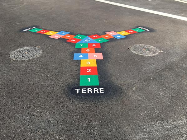 Améliorer la motricité des enfants, structurer les espaces de jeux et créer de véritables supports d’apprentissage en extérieur : le marquage au sol est une solution simple et efficace pour dynamiser la cour d’école.